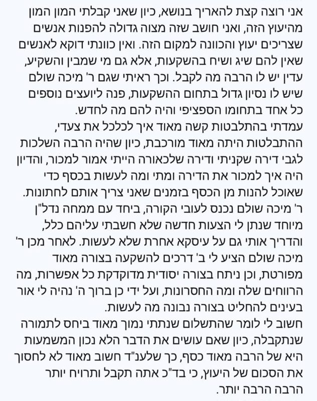 וליווי של משקיעים לפני החלטות משמעותיות.